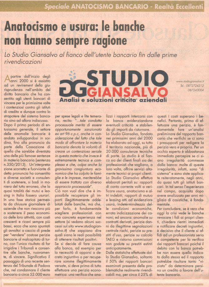 Applicando la loro metodologia, fecero immediatamente una perizia econometrica che rilevò diverse criticità nel contratto, nonché usura, e questo ci permise di pianificare una strategia difensiva.